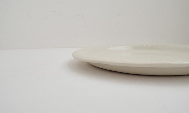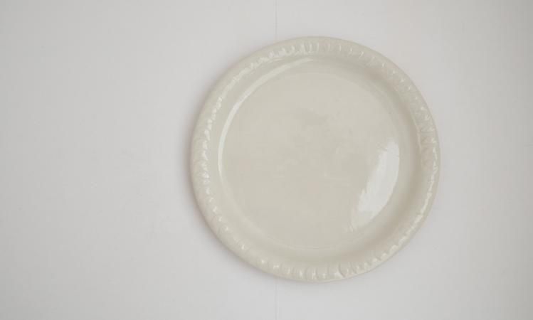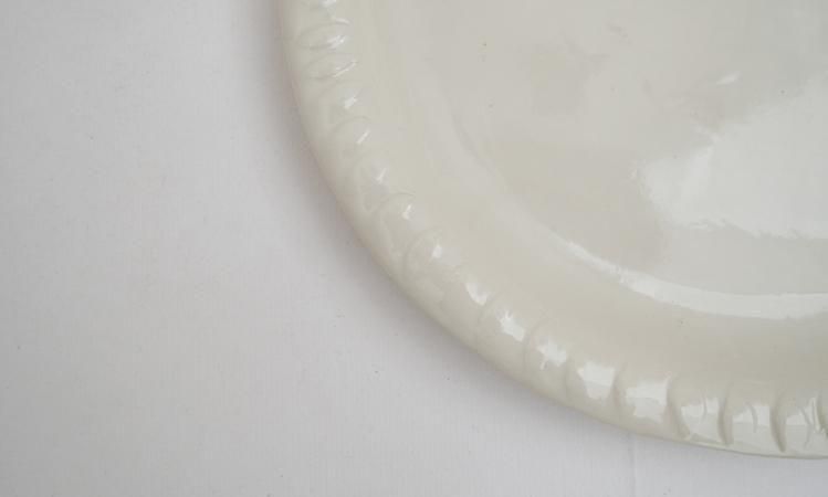 大きなプレート皿。縁にさりげない模様があり可愛いです。
