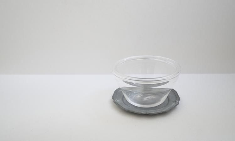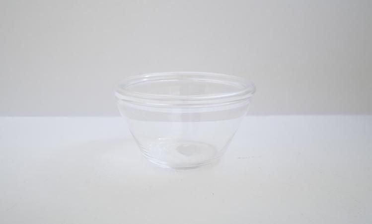 ふち折り返しの透明なカップです。デザートやサラダに。