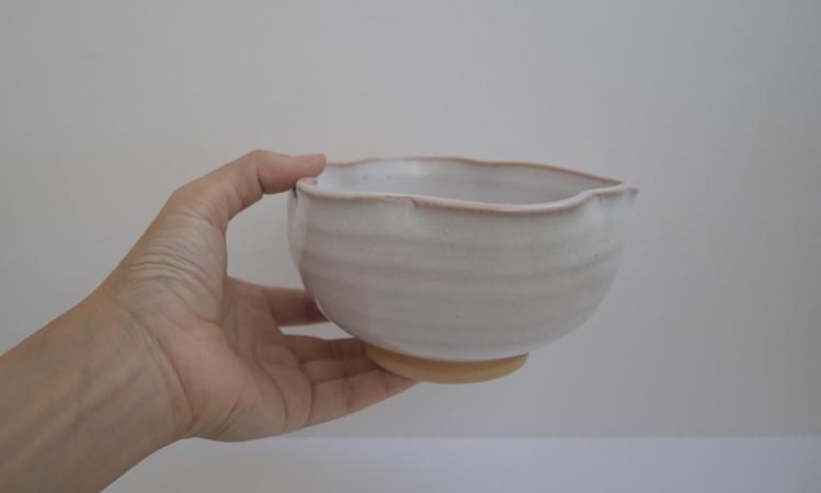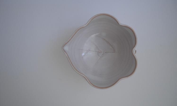 葉型の器。湯冷ましとして、盛り鉢として、幅広く活用できそうな器です。萩焼の経年変化をお楽しみください。