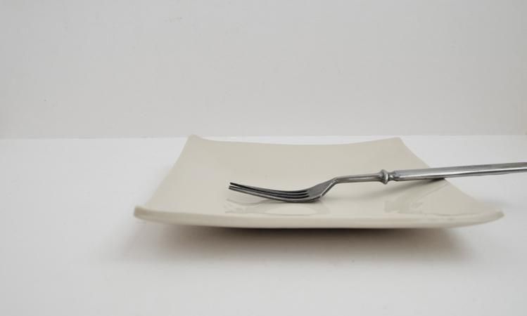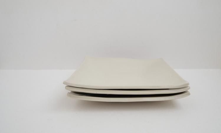 一点一点が手作りで、シンプルな角皿。ケーキ皿にもおすすめです。